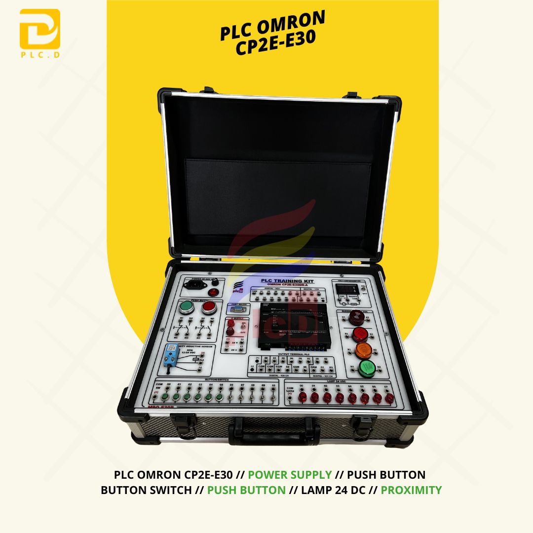 Trainer PLC Omron CP2E-E30 adalah media pembelajaran berbasis PLC Omron seri CP2E tipe E30 yang dikemas dalam bentuk koper portabel oleh PLCD / PT. Datek Inovasi Nusantara. Dengan jumlah I/O lebih banyak dibanding tipe E20, trainer ini mendukung praktikum dasar hingga menengah dalam pemrograman dan aplikasi otomasi industri.