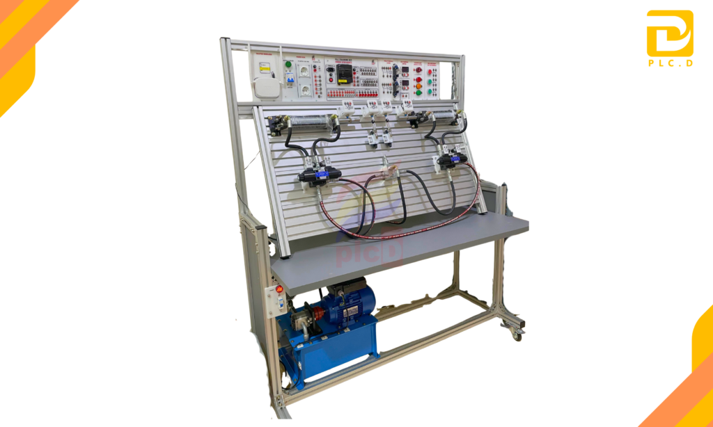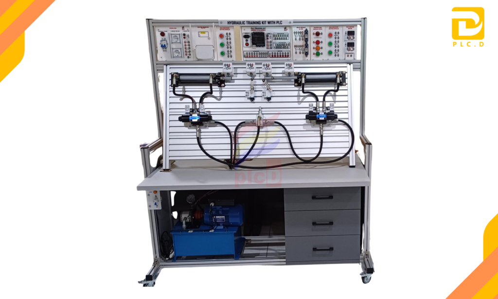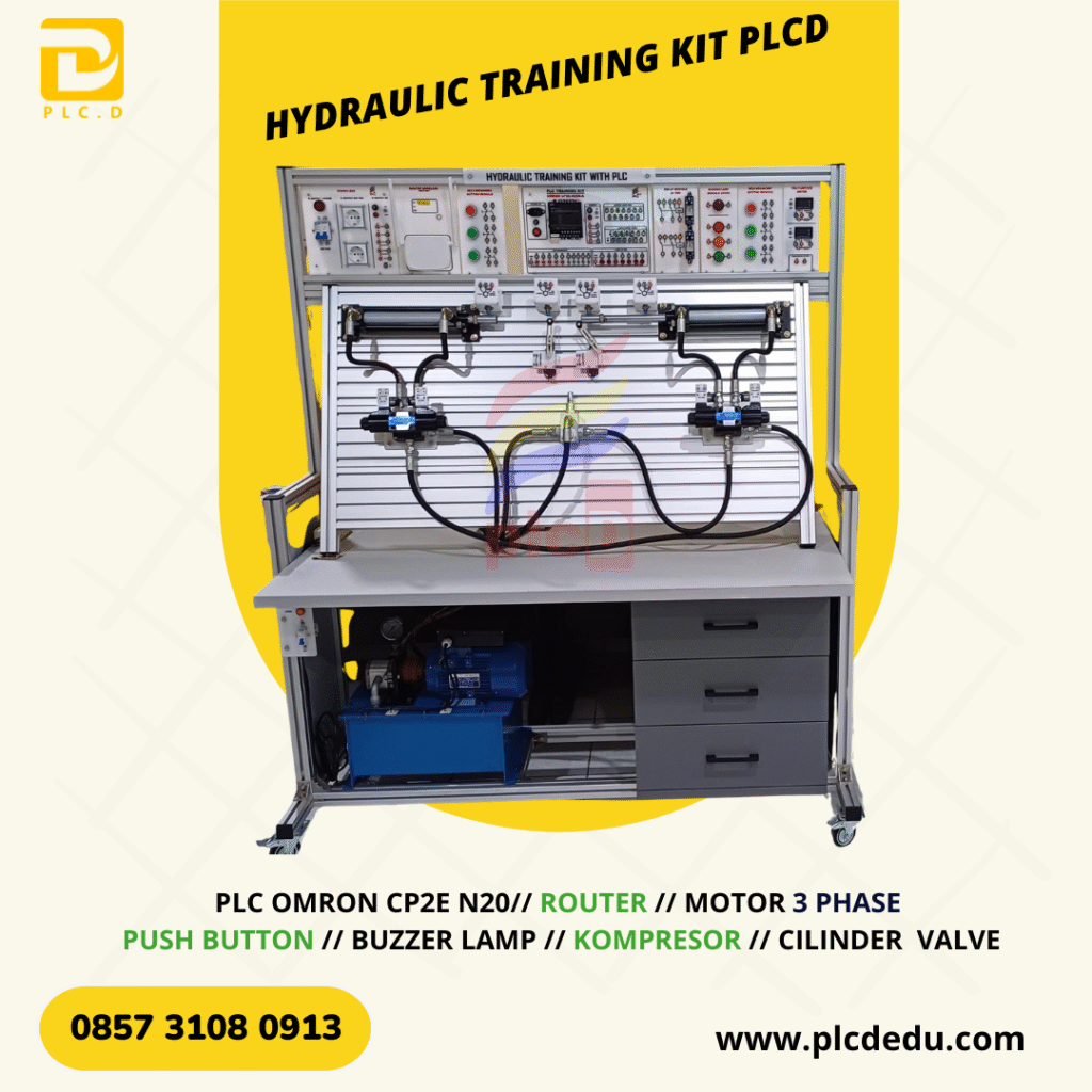 Workbench Hydraulik Training KIT dengan desain meja yang kokoh dengan bahan alumunium profile 4040 series, Dengan perpaduan Elektro-Hydraulik training KIT sangat modern dan sesuai dengan teknologi saat ini terdiri dari beberapa komponen pendukung, 2 double acting cylinder, 2 unit 4/3 solenoid valve, oil pump 1 phase berkapasitas 400 kW.