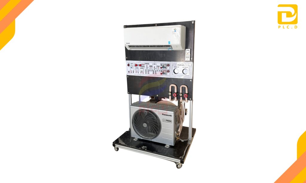 AC Split Training Kit adalah alat peraga/trainer pendidikan yang dirancang untuk mempelajari sistem pendingin berbasis refrigerasi (AC Split) yang umum digunakan pada bangunan rumah tinggal, perkantoran, dan fasilitas komersial. Sistem ini terdiri dari dua unit utama, yaitu indoor unit dan outdoor unit, sehingga disebut “split”, karena proses pendinginan udara terjadi di dalam ruangan, sementara pembuangan panas dilakukan di luar ruangan.