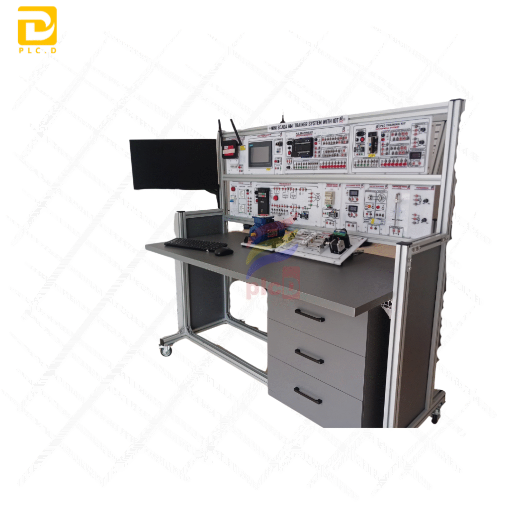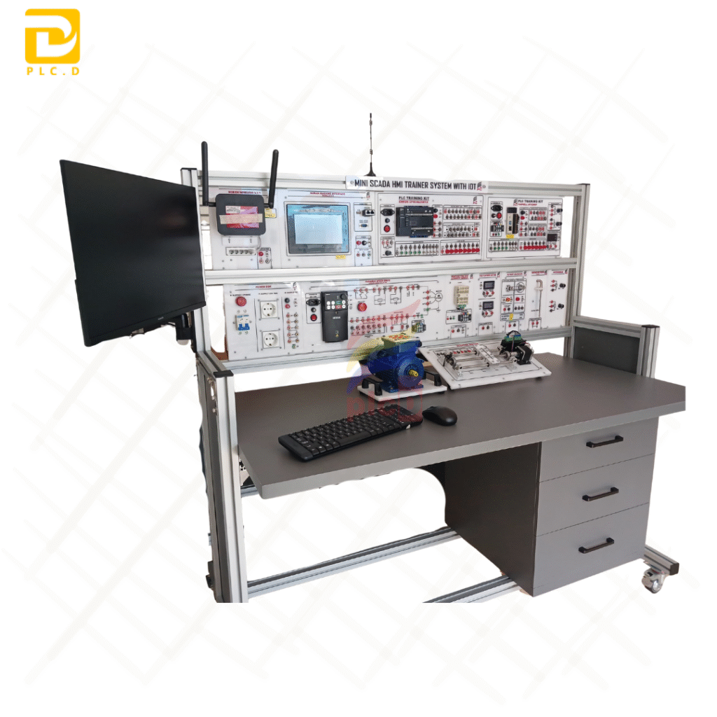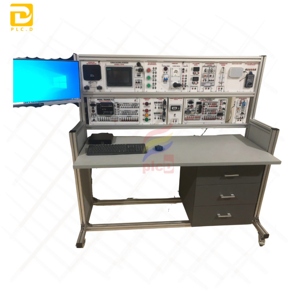 Trainer PLC ini merupakan kategori PLC Advance dilengkapi Aktuator Motor Stepper dan HMI yang dapat diakses Internet Of Thing. training KIT ini mengguanakan meja kerja yang easy moving.