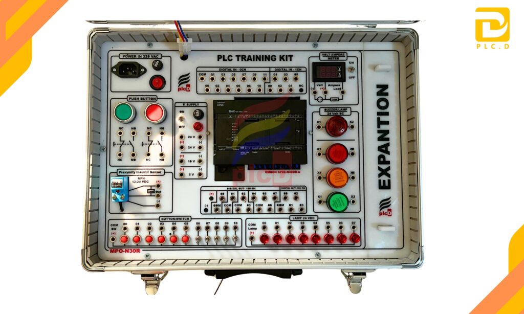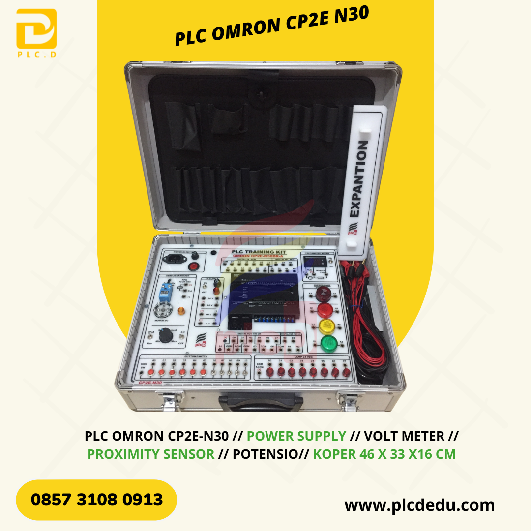 Trainer PLC Omron CP2E-N30 adalah media pembelajaran otomasi industri berbasis PLC Omron seri CP2E tipe N30 yang dirancang dalam bentuk koper portabel oleh PLCD / PT. Datek Inovasi Nusantara. Dengan kapasitas 30 I/O serta dukungan instruksi dan komunikasi yang lebih lengkap, trainer ini ideal untuk praktik pemrograman tingkat dasar hingga menengah-lanjut.